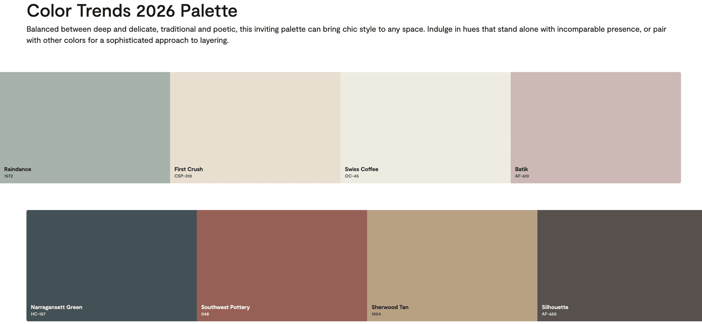 Each year Benjamin Moore decides to set some trend predictions, and this year I actually really like the color. Its moody & dark but feels classy & timeless. What do you think of their selection for 2026?